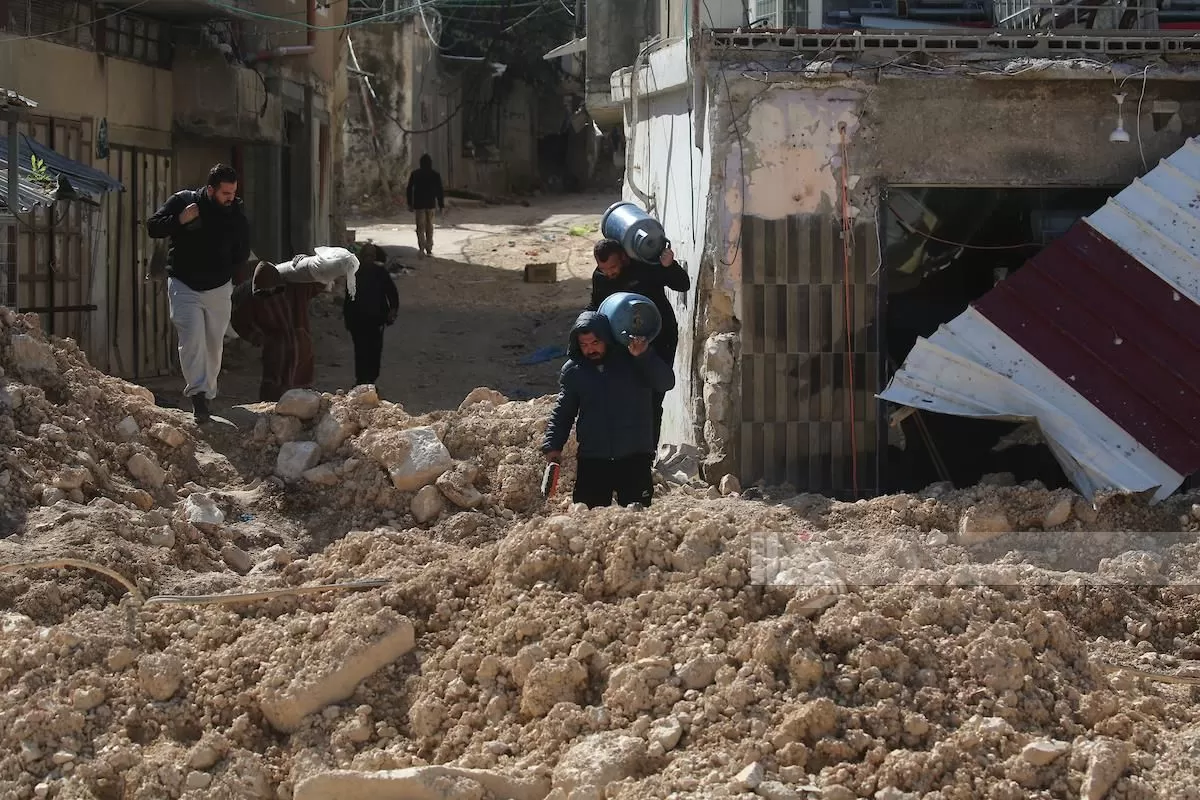 وشهد المخيم منذ اليوم الأول للعدوان الاسرائيلي حركة نزوح كبيرة بين سكانه من النساء والأطفال وكبار السن والمرضى، تركزت في حارات المنشية والمسلخ وجبلي النصر والصالحين، حيث فاق عددهم الـ5500 نازح توجهوا الى مراكز إيواء ومنازل أقاربهم في المدينة وضواحيها وريفها.