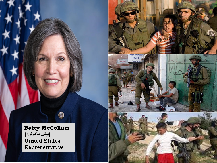 اعلام فتح / وفا- أعادت عضو الكونغرس الأميركي، بيتي ماكولوم، تقديم مشروع قرار يحمل اسم "الدفاع عن حقوق الإنسان للأطفال الفلسطينيين والعائلات التي تعيش تحت الاحتلال الإسرائيلي".