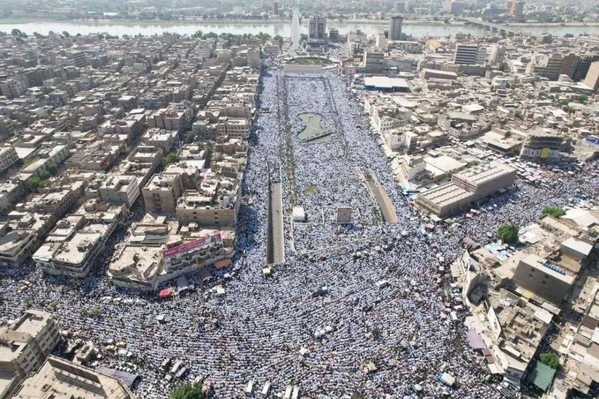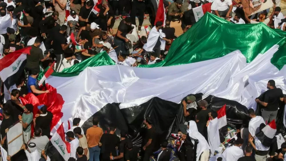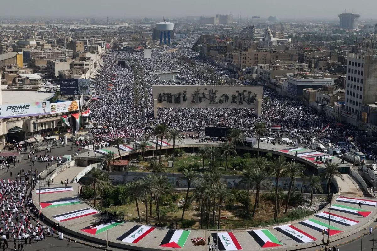 اعلام فتح / وكالات : تجمع مئات الآلاف اليوم الجمعة وسط بغداد في واحدة من أكبر المظاهرات المؤيدة للفلسطينيين في البلاد منذ عقود.