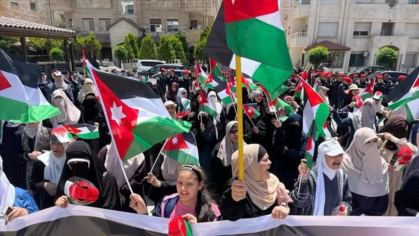 عشرات آلاف الأردنيين يشاركون في مسيرة حاشدة نصرة لفلسطين