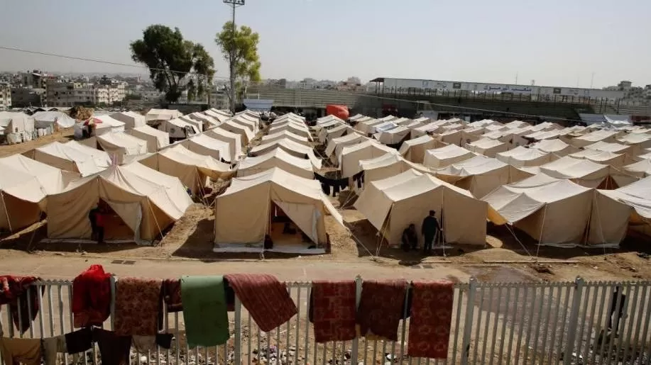 نزوح نحو "المجهول"، ومحفوف بالمخاطر، هكذا هو حال النازحين من الشمال، لتبدأ فصول جديدة من المعاناة، وسط شح كبير في مقومات الحياة.. فالمكان أشبه بمخيم لجوء يضج بالأطفال وعائلاتهم وطوابير من المواطنين، يصطفون للحصول على جردل ماء، كما يتم توفير الأكل عبر "تكيات" يتم التبرع بها، من مبادرين داخل غزة أو خارجها.