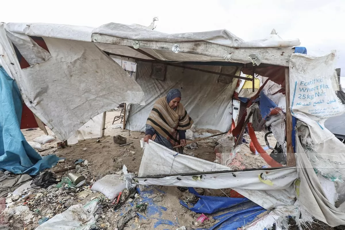 وأشارت النازحة أم عبد الله من رفح إلى خيمتها التي لم يتبقَّ منها إلا جزء بسيط من الشادر الذي كان يغطيها، وقالت بصوت خافت: لولا عناية الله لابتلعني البحر أنا وأطفالي الخمسة.