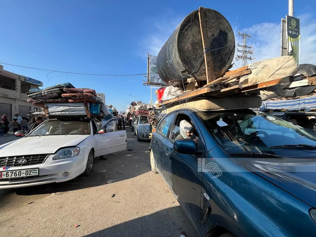 وفي تمام الساعة التاسعة صباحا، سمح للنازحين بالانتقال بالمركبات إلى شمال القطاع، بعد اخضاعها للتفتيش، وذلك من خلال شارع صلاح الدين.