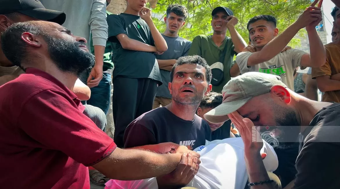 كما استشهد مواطن وأصيب آخرون بجروح متفاوتة جراء قصف طال خيمة تؤوي نازحين من عائلة مقداد، قرب مفترق العيون مع شارع الجلاء غرب مدينة غزة.