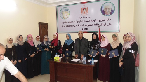 توزيع مكرمة الرئيس على أوائل الثانوية العامة بمحافظة غزة