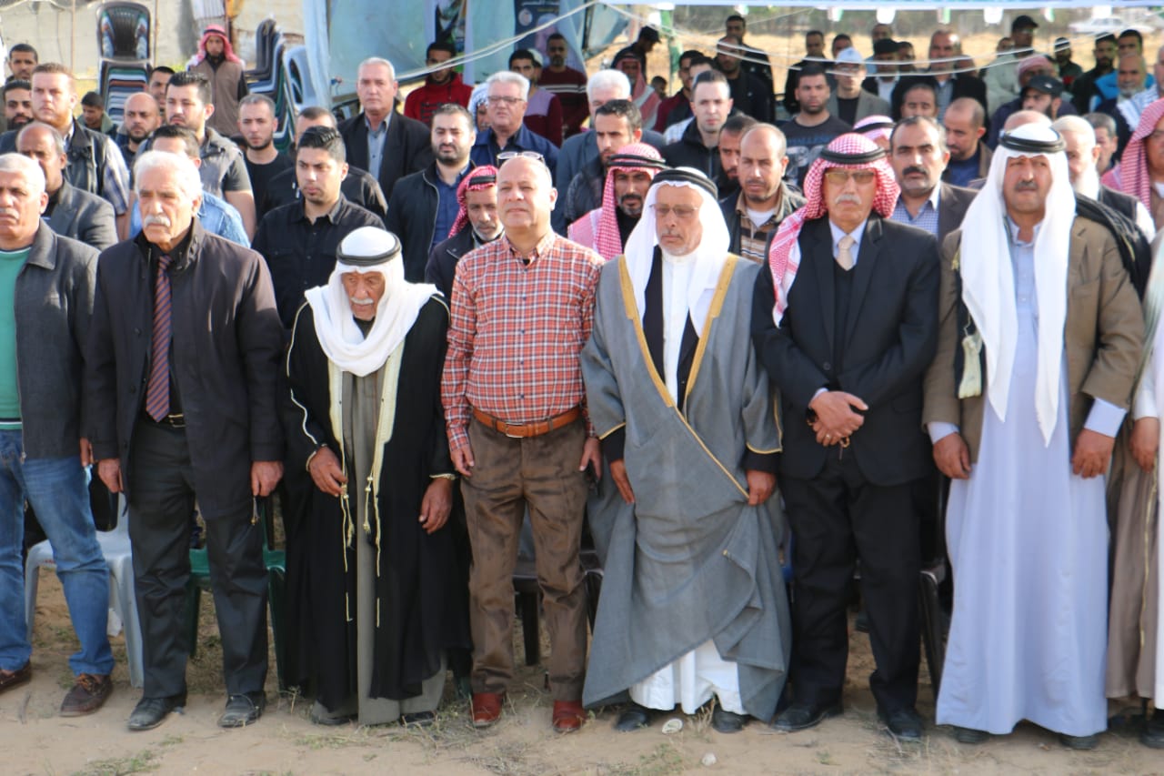 وأكد احمد أبوهولي في كلمته، "على أن الشعب الفلسطيني سيواصل نضاله المشروع خلف قيادته الشرعية برئاسة محمود عباس رئيس دولة فلسطين الثابت على الثوابت الذي قال بكل ثبات للإدارة الأمريكية كلمة "لا" ل صفقة القرن لتعود إلى أدراجها في البيت الأبيض .