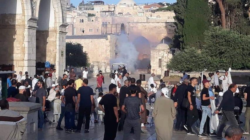 واقتحمت قوة معززة من الاحتلال الأقصى، وداهمت المصلى القبلي لإخراج المعتكفين منه بالقوة، إلا أنها عادت وانسحبت منه وأغلق المصلون أبواب المصلى، في حين انتشر المعتكفون في باحاته، وصدحت حناجرهم بهتافات التكبير الاحتجاجية ضد اقتحامات جديدة واستفزازية للمستعمرين، ما أدى إلى اعتداء قوات الاحتلال عليهم بالدفع والضرب، وأصيب عدد منهم، في حين ما زال المسجد يشهد توترا كبيرا بفعل تدنيسه من قوات الاحتلال وعصابات المستعمرين والاعتداء على المصلين، وسط محاولات من الاحتلال لإخراج المعتكفين من المسجد بالقوة.