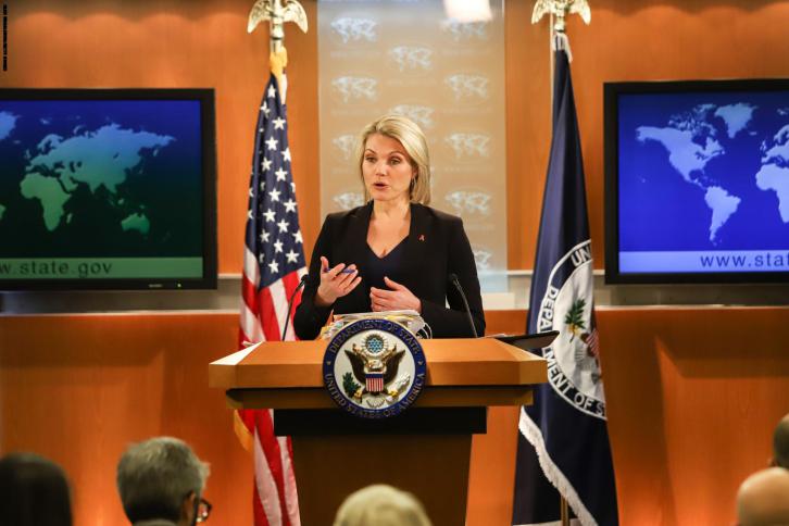 ثم استلمت مكانه الإعلامية القادمة من شبكة "فوكس نيوز" هيذر ناورت ، التي رغم ضحالة خبرتها في المواقع المشابهة، تأقلمت مع جو الصحافة الجريء (والعدواني أحياناً) في قاعة الصحافة بسرعة ودماثة، مرتين في الأسبوع (عندما تكون في واشنطن)، وإن كانت أجوبتها تعكس موقف الإدارة دون المغامرة خارج البرواز الرسمي ولو للحظة، لا سيما أنه أصبح واضحاً أن السياسة الخارجية تُدار من البيت الأبيض (خاصة بشأن الصراع الفلسطيني الإسرائيلي أو ملف السلام). كان ذلك في عهد وزير خارجية ترامب الأول ريكس تيلرسون، الذي اتسم بالانكفاء على الذات، وخفف من جولات وزير الخارجية للخارج، واكتفى باصطحاب حفنة من المسؤولين استثنت ناورت.