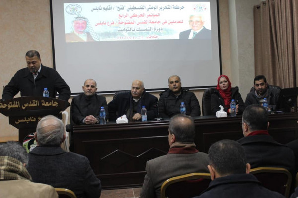 نابلس- إعلام فتح - عقدت حركة التحرير الوطني الفلسطيني فتح/إقليم نابلس، المؤتمر الحركي الرابع للعاملين في جامعة القدس المفتوحة-فرع نابلس دورة التمسك بالثوابت، وذلك يوم أمس الثلاثاء الموافق 21/1/ 2020، في قاعة عزمي يعيش في الجامعة.