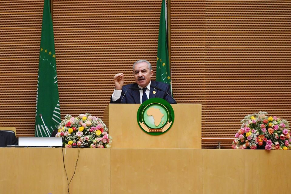 جاء ذلك خلال كلمة رئيس الوزراء، اليوم الأحد، نيابة عن الرئيس محمود عباس، في الدورة العادية الـ33 لقمة رؤساء الدول والحكومات للاتحاد الافريقي، المُنعقدة في العاصمة الإثيوبية أديس أبابا، تحت عنوان "إسكات البنادق لتهيئة الظروف المواتية لتنمية أفريقيا".